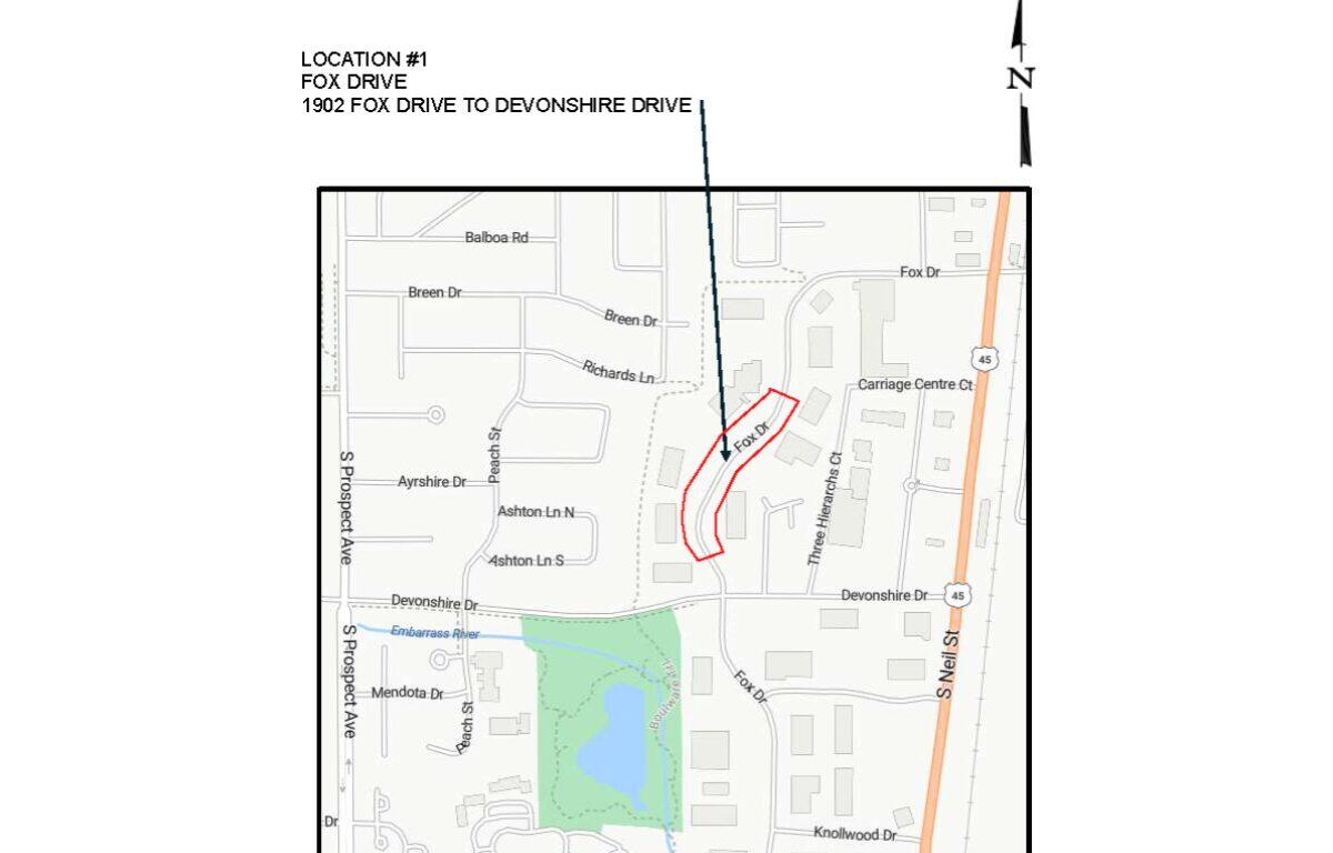 CHAMPAIGN, IL (Chambana Today) — A&A Concrete, as part of the 2026 Concrete Patching Project, will patch pavement on portions of Fox Drive from 1902 Fox Drive to just north of Devonshire Drive. This work will require a temporary road closure starting on Monday, March 30 at 7 a.m. until Friday, April 3, weather permitting.