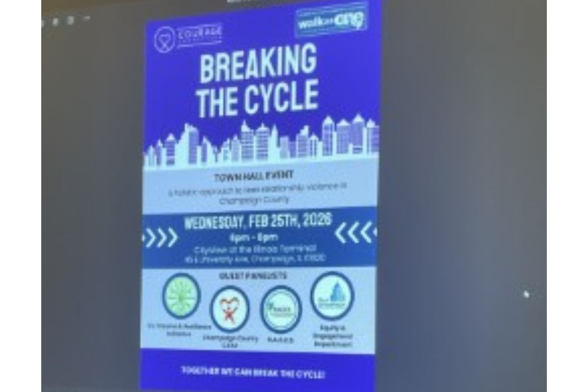 The discussion had been part of a broader community effort. The Champaign County Community Coalition, in partnership with Courage Connection, hosted the “Breaking the Cycle – Town Hall Event” on Feb. 25 from 6 to 8 p.m. at the Cityview Banquet and Meeting Center, located on the fourth floor of the Illinois Terminal in Champaign.