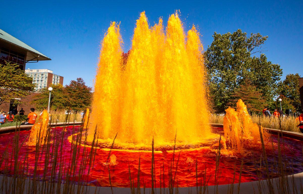CHAMPAIGN-URBANA (Chambana Today) – University of Illinois Homecoming 2024 began with the annual Alumni Center Fountain dyeing last weekend.