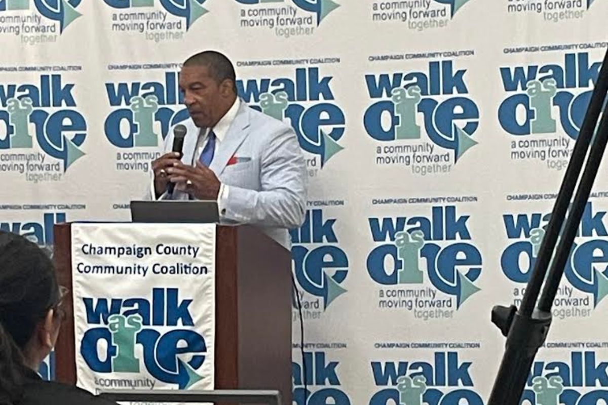 James Harden, Champaign Unit 4 School’s Executive Director of School Improvement and Engagement, delivered a strong message on school attendance: “Missing 10 days classifies a student as chronically absent. In Champaign, there are about 10,000 students — and 1,000 of them aren’t in school regularly. That’s 10%, and it’s unacceptable.”